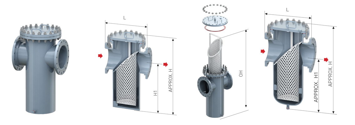 進(jìn)口直通籃式過濾器的進(jìn)口出口在一個(gè)水平位置上,由一個(gè)主單筒與進(jìn)口出口組成,用于攔截管道介質(zhì)里的雜質(zhì)。在生產(chǎn)過程中,流體會(huì)隨著管道流經(jīng)過濾器,液體先通過筒體而后進(jìn)入濾籃,流體從濾籃中流出直至過濾器的出口排出,其中的固體雜質(zhì)顆粒為濾籃所阻擋,與流體分離完成過濾。過濾器使用一段時(shí)間后,固體雜質(zhì)在濾籃中堆積,這時(shí)只要旋開主管底部的螺塞,將直通過濾器內(nèi)的液體排凈,拆卸法蘭,清洗過濾籃后重新裝入。