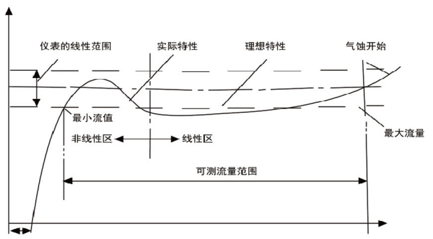 流量計(jì)的系數(shù)與流量(或靂諾數(shù))的關(guān)系曲線如下圖所示。 由圖可見(jiàn), 儀表系數(shù)分為二段, 即線性段和非線性段。 線性段約為其工作段的三分之二, 其特性與傳感器結(jié)構(gòu)尺寸及流體粘性有關(guān)。非線性段特性受承軸摩擦力, 流體粘性阻力影響較大。 當(dāng)流體量低于傳感器流置下限時(shí), 儀表系數(shù)隨著流噩迅速變化。 當(dāng)流噩超過(guò)流噩上限時(shí)要注意防止氣蝕現(xiàn)象。