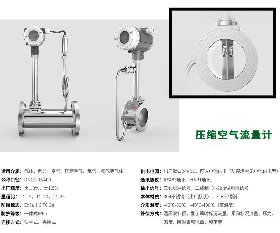 1、安裝方便,適用于壓縮空氣、氮?dú),氬氣等氣體的測量;