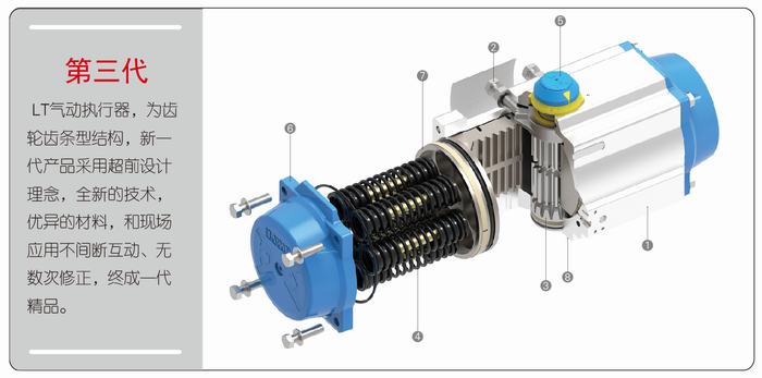 2氣動執(zhí)行器:采用齒輪齒條結(jié)構(gòu),將氣源壓力轉(zhuǎn)化為扭矩,驅(qū)動閥門轉(zhuǎn)動。