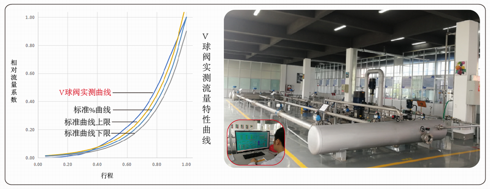 萊克通過不斷改變開口形狀,在實驗室反復測試,再修正曲線,讓V球閥的實測流量特性曲線接近理想%曲線,從而獲得和調(diào)節(jié)閥一樣的調(diào)節(jié)性能,但是其流通能力比同口徑調(diào)節(jié)閥大30-40%。