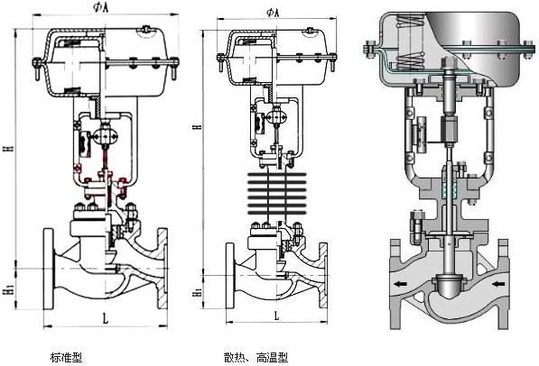 氣動高溫調(diào)節(jié)閥由氣動多彈簧隔膜執(zhí)行器和帶高溫翅片的調(diào)節(jié)閥組成,適用于介質(zhì)溫度高于250℃的場合。氣動高溫調(diào)節(jié)閥閥體流道采用S型流線,結構緊湊,重量輕。它具有動作靈敏、壓降損失小、閥門容量大、流量準確、維護方便等優(yōu)點。它可以在惡劣的工作條件下使用。氣動高溫調(diào)節(jié)閥廣泛用于精確控制氣體、液體、蒸汽等介質(zhì)的工藝參數(shù),如壓力、流量、溫度、液位等參數(shù),以維持給定值。氣動高溫調(diào)節(jié)閥特別適用于泄漏小、閥門壓差小、溫度高的場合。