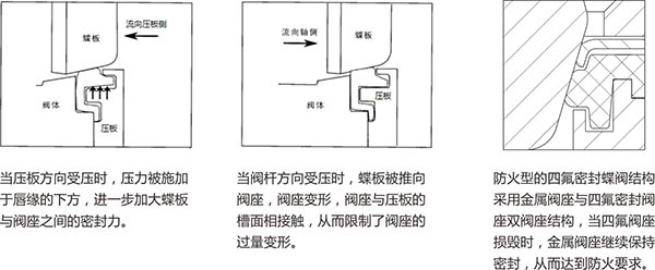 1、由于采用雙偏心結構,閥門在開啟過程中,蝶板逐漸脫離閥座,減少了密封面之間的摩擦,從而延長了使用壽命。閥座采用唇形結構設計,