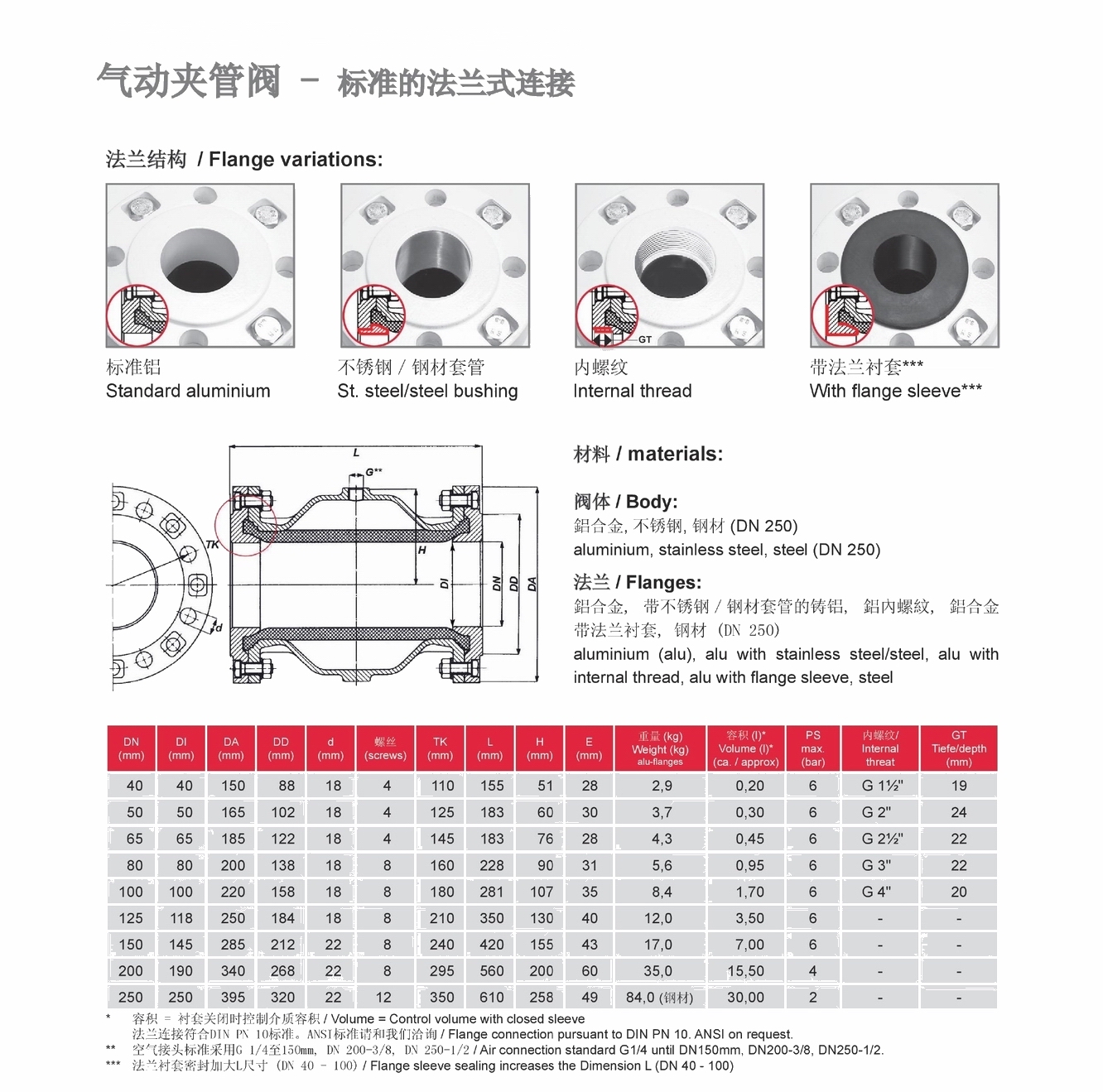 ◆所有的法蘭式夾管閥的外殼均呈扁平的橢圓形,因此保證了較低的壓縮空氣消耗,這不僅意味著可以節(jié)省能源,而且同時(shí)也確保了氣動(dòng)夾管閥預(yù)定的唇形彎折方向。