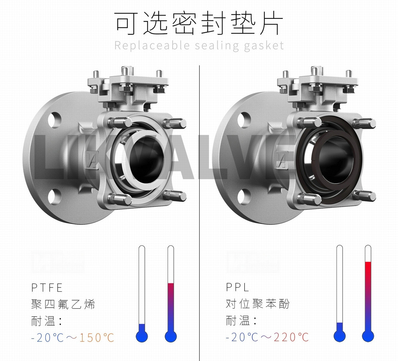 1,根據(jù)工況需要?dú)鈩臃ㄌm式球閥可分為軟密封(-30~180℃)和硬密封(-40~450℃)兩種密封結(jié)構(gòu),以便在不同介質(zhì)、不同溫度及不同壓力的場所中合理使用。