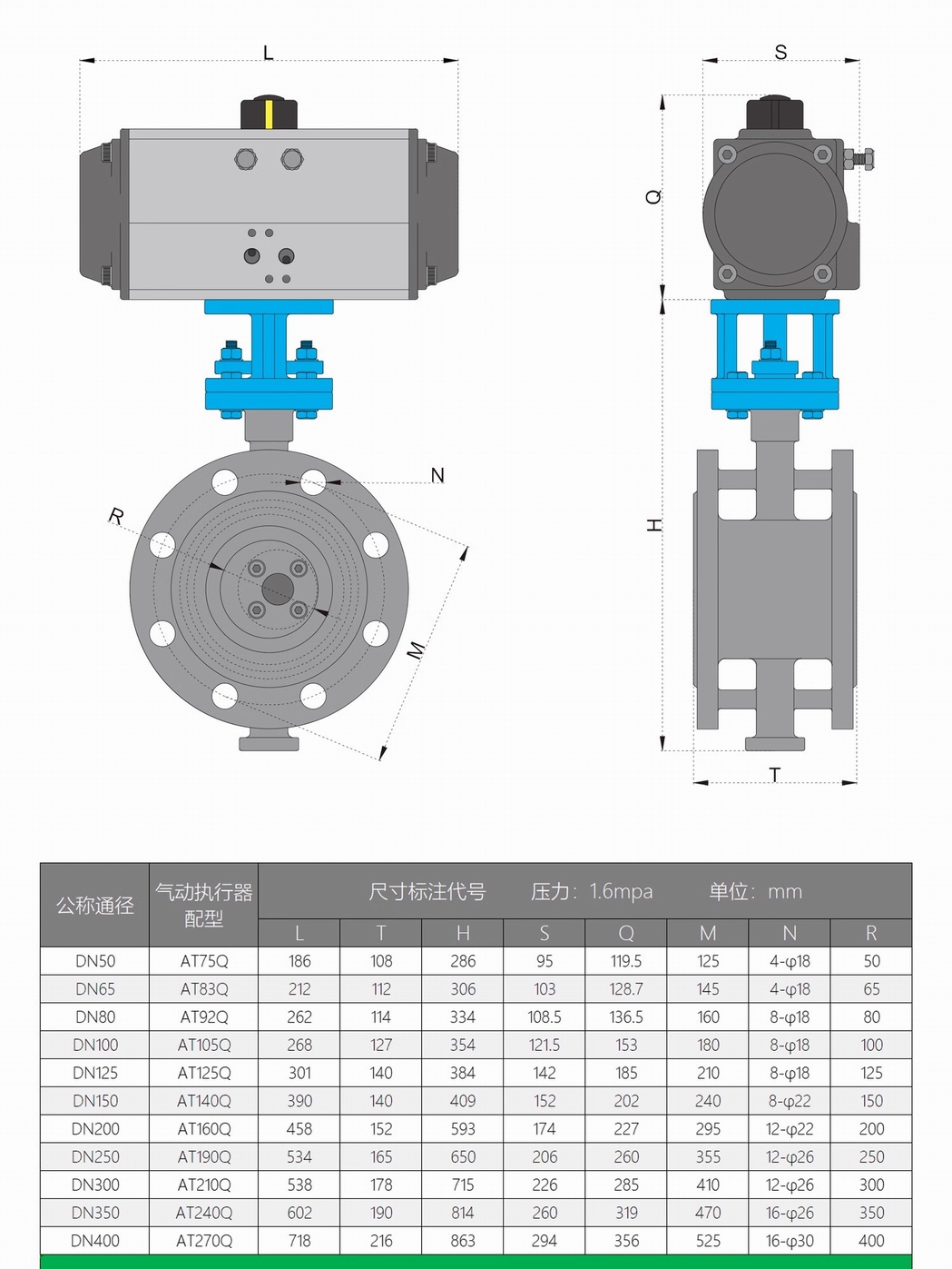進(jìn)口氣動(dòng)硬密封法蘭蝶閥尺寸參數(shù)