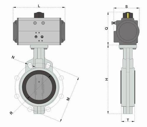 進(jìn)口氣動(dòng)對夾式襯膠蝶閥通過氣動(dòng)執(zhí)行機(jī)構(gòu)驅(qū)動(dòng)蝶板旋轉(zhuǎn),實(shí)現(xiàn)流體的快速啟閉與流量調(diào)節(jié)27。其采用對夾式連接設(shè)計(jì),無需額外法蘭,顯著節(jié)省安裝空間,尤其適用于緊湊型管道系統(tǒng)(如船舶、化工裝置)56。閥體內(nèi)壁及蝶板表面襯覆橡膠材料(如NBR、EPDM、FKM),兼具耐腐蝕性與密封性能,可適配腐蝕性介質(zhì)及衛(wèi)生要求較高的場景