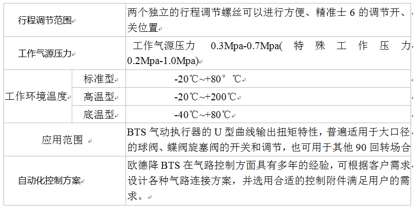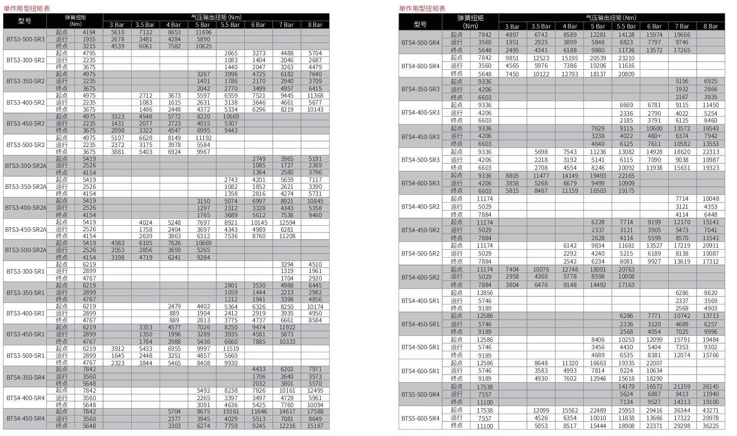 BTS系列雙作用執(zhí)行器可以提供最大270000NM的扭矩輸出,單作用執(zhí)行器可以提供最大120000NM的扭矩輸出(工作壓力3-7巴)