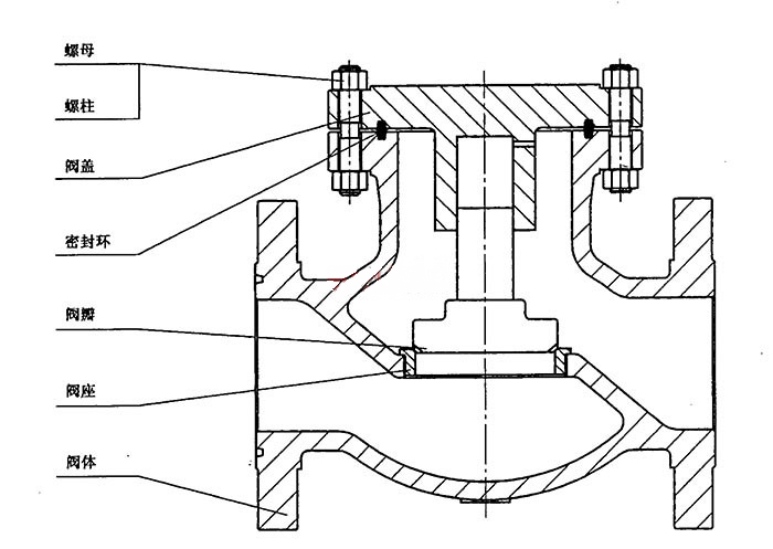 進口升降式止回閥的典型結(jié)構(gòu)如下圖所示 。