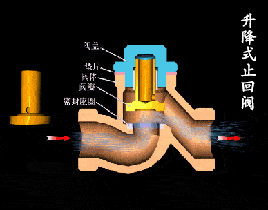 1、當介質(zhì)由閥體箭頭所示流向進入閥體,介質(zhì)的壓力作用在閥瓣上產(chǎn)生向上的推力,當介質(zhì)推力大于閥瓣重力時,閥門打開。當閥后介質(zhì)壓力作用在閥瓣上的力加上閥瓣自身重力大于閥前壓力作用在閥瓣上的力時,閥門關(guān)閉,阻止介質(zhì)倒流;